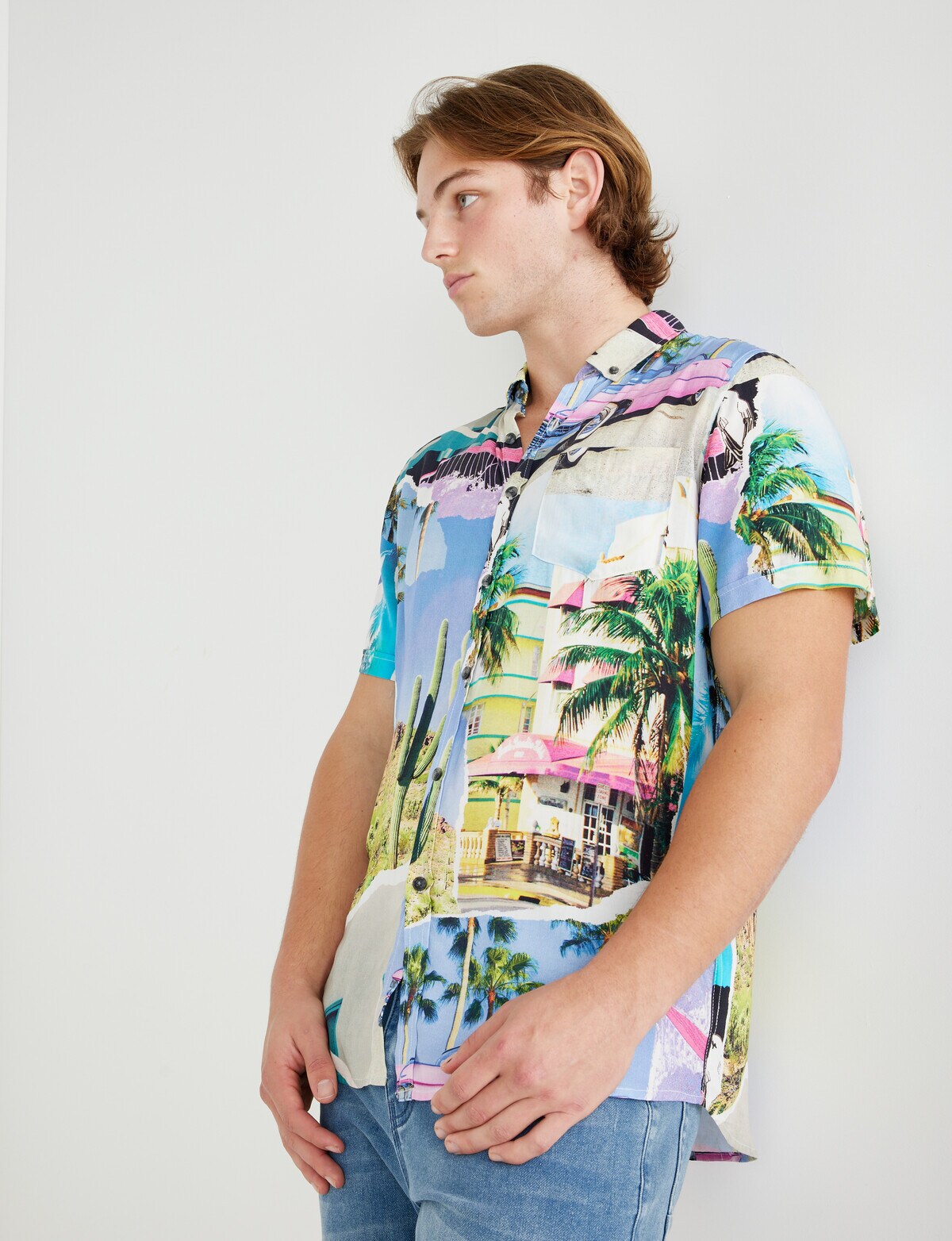 Tarnish Cadillac Palms Short Sleeve Shirt Blue Casual Shirts