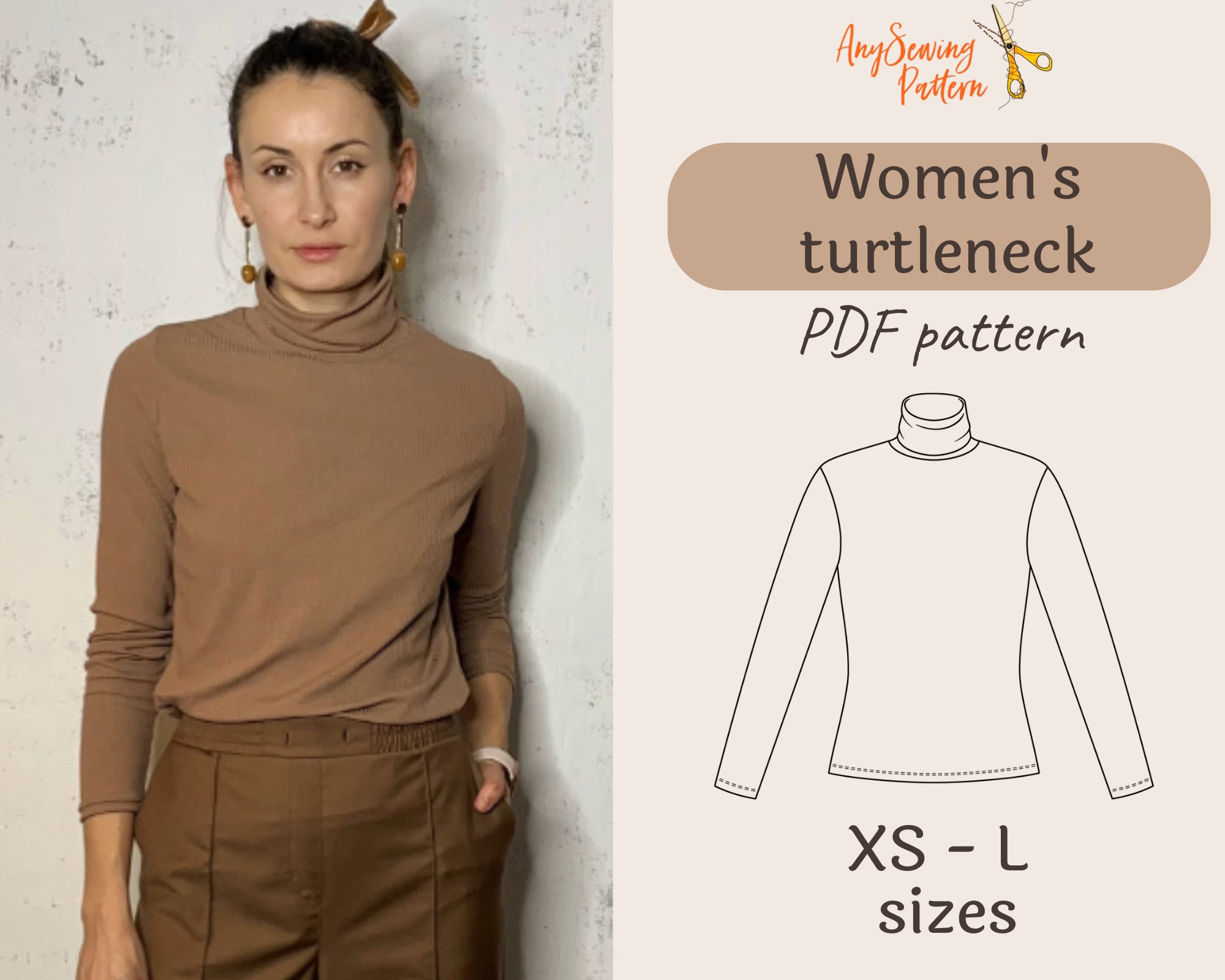 Turtleneck Mock Neck Top Digital Pdf Sewing Pattern Us Etsy